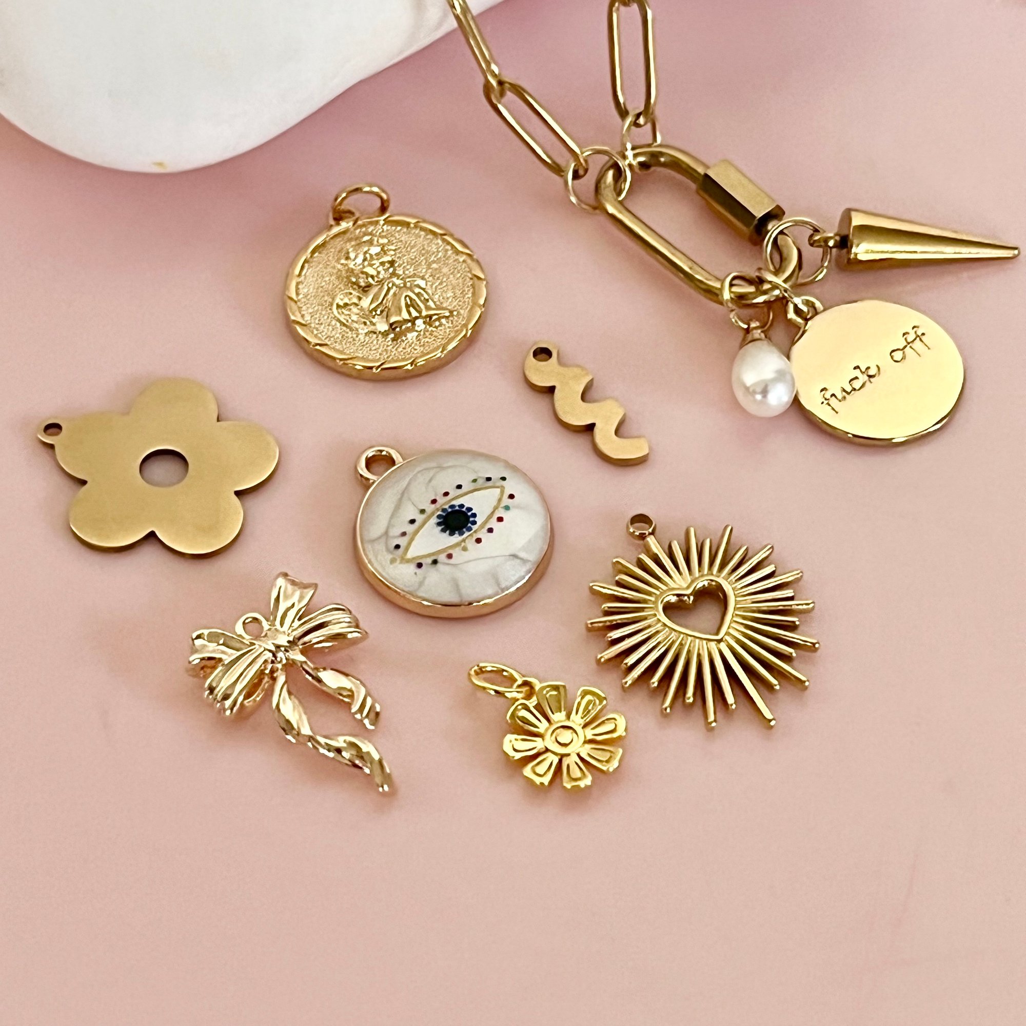 Choose your charms with this one! The carabiner lock unscrews and allows you to mix and match charms. You get to choose the three that you like. Your choices of charms are: